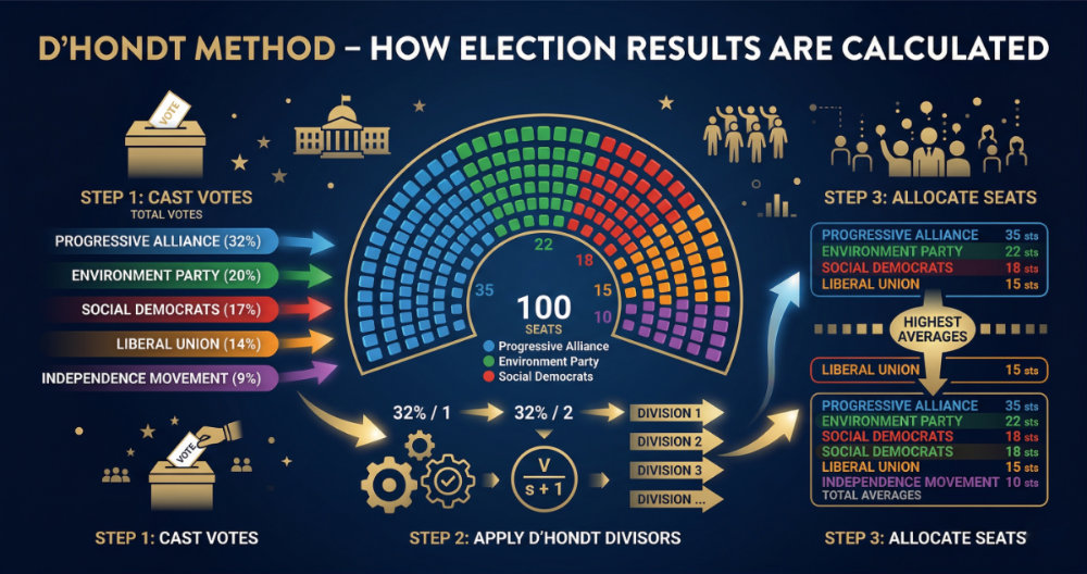 In this article, we’ll explain what the D’Hondt system is, how it works, and why it matters—clearly and simply.